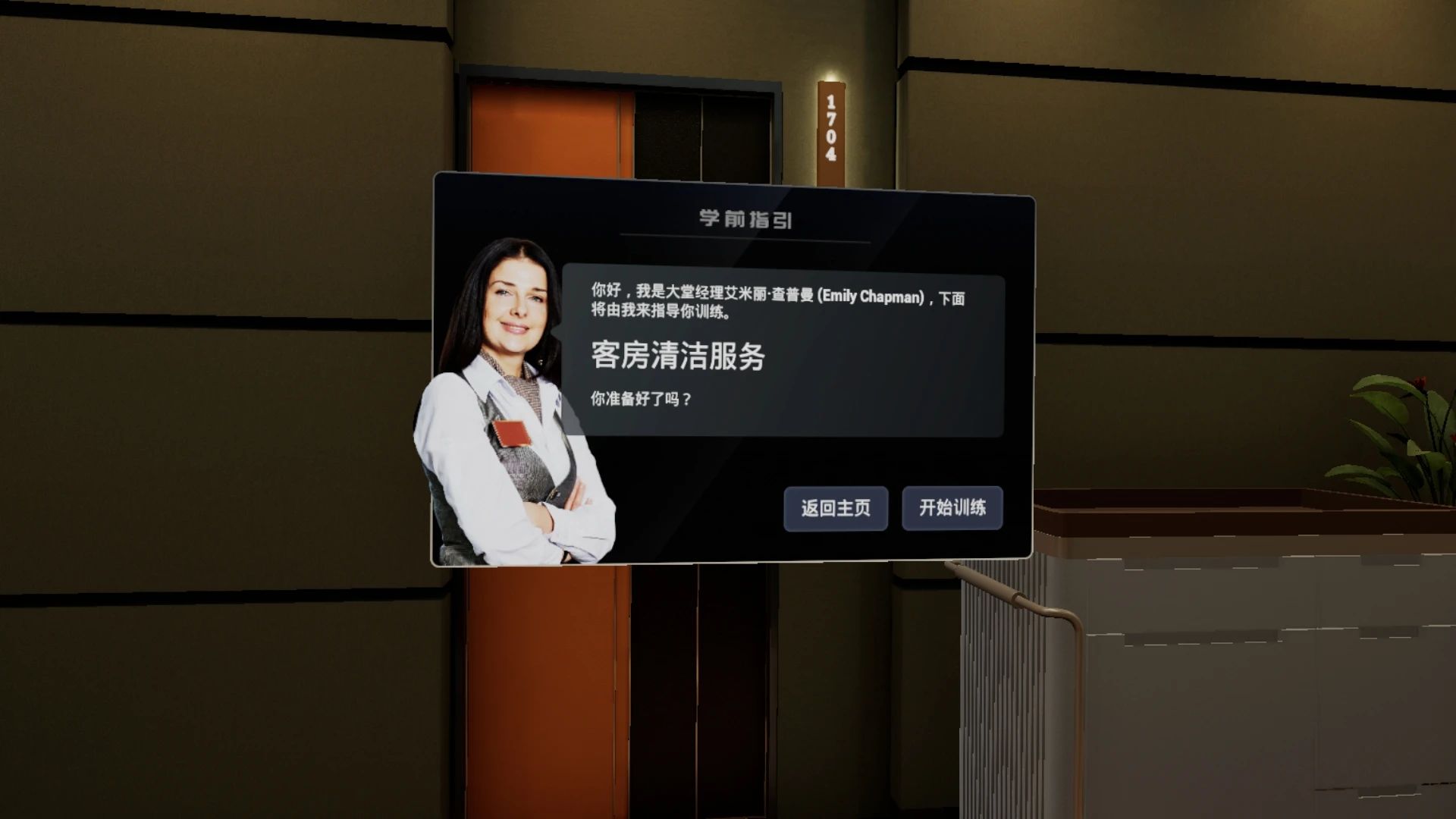 房间布置与设施检查:员工通过VR训练了解房间内各类设施、设备的使用和检查要点;