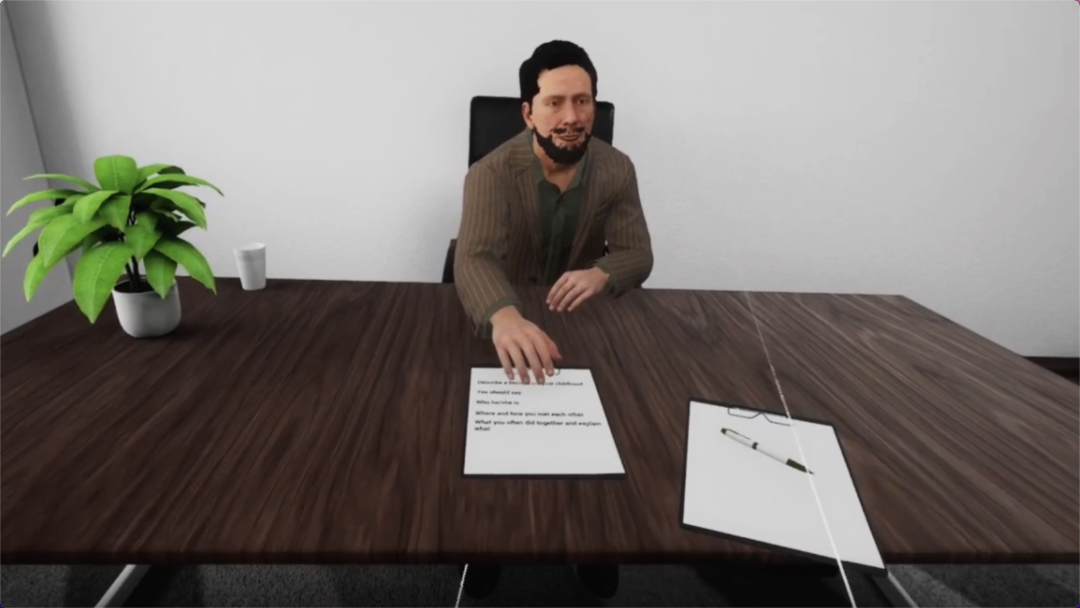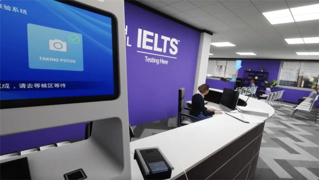 本系统利用虚拟现实技术,通过1:1比例的仿真环境,完美还原了雅思面试场景。从学员进入虚拟考场的那一刻起,系统便模拟了真实的考试氛围,包括: