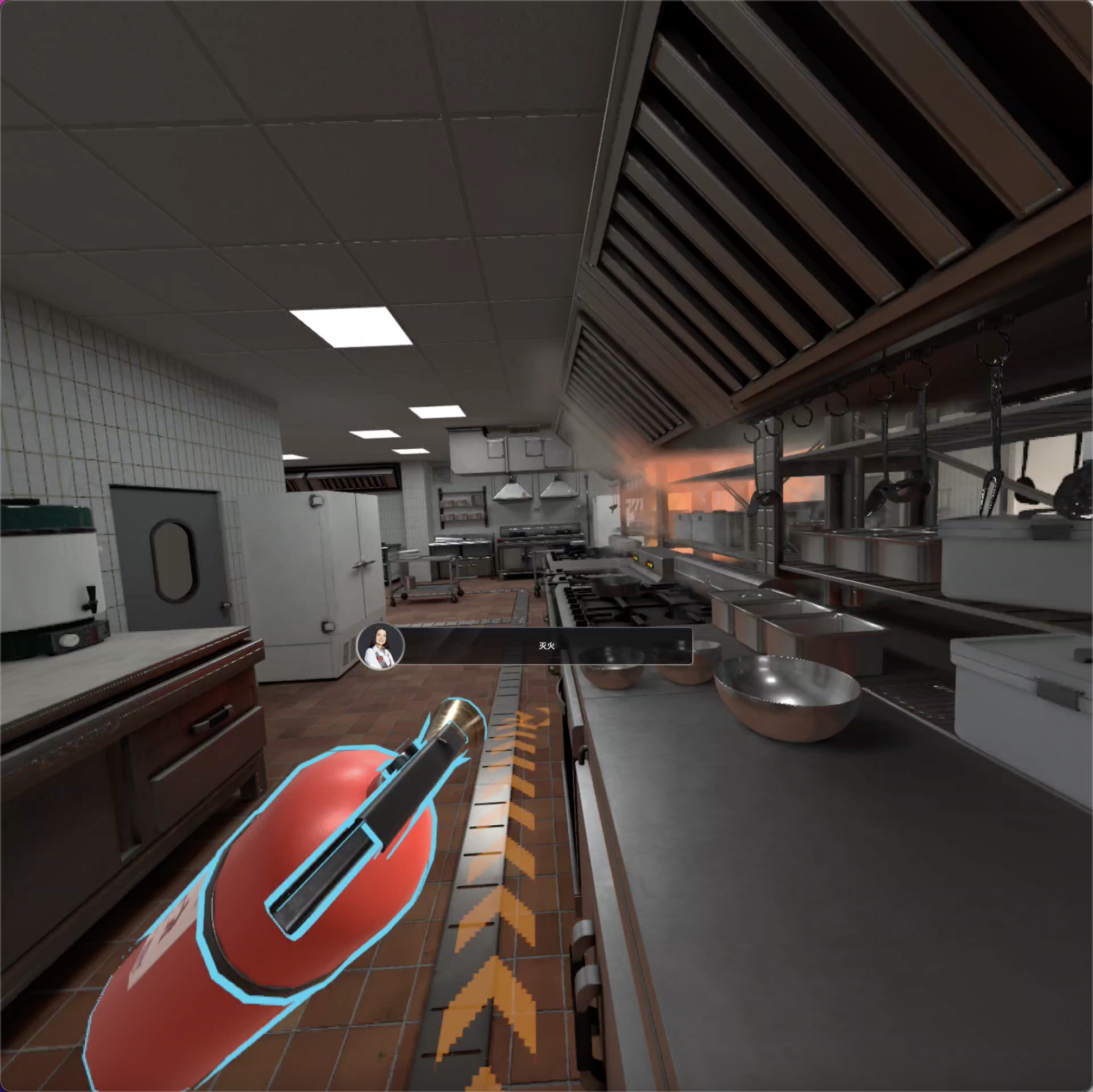 应急设施操作:虚拟环境中通过实时互动,学员可以使用灭火器、消防栓、应急灯等设备,了解设备的使用方法,确保紧急情况下能够准确、快速地使用这些设施。