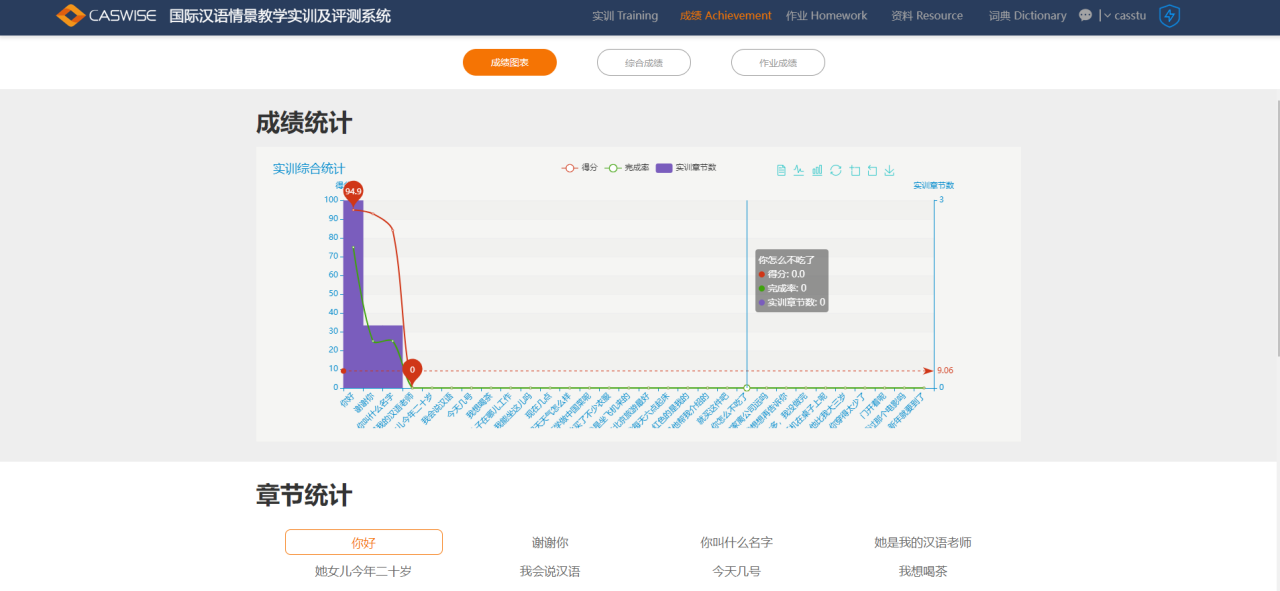 教师可以查看学生的实训成绩、实训时长、平均成绩,可以根据条件进行筛选,并可以生成统计分析图表,更直观。