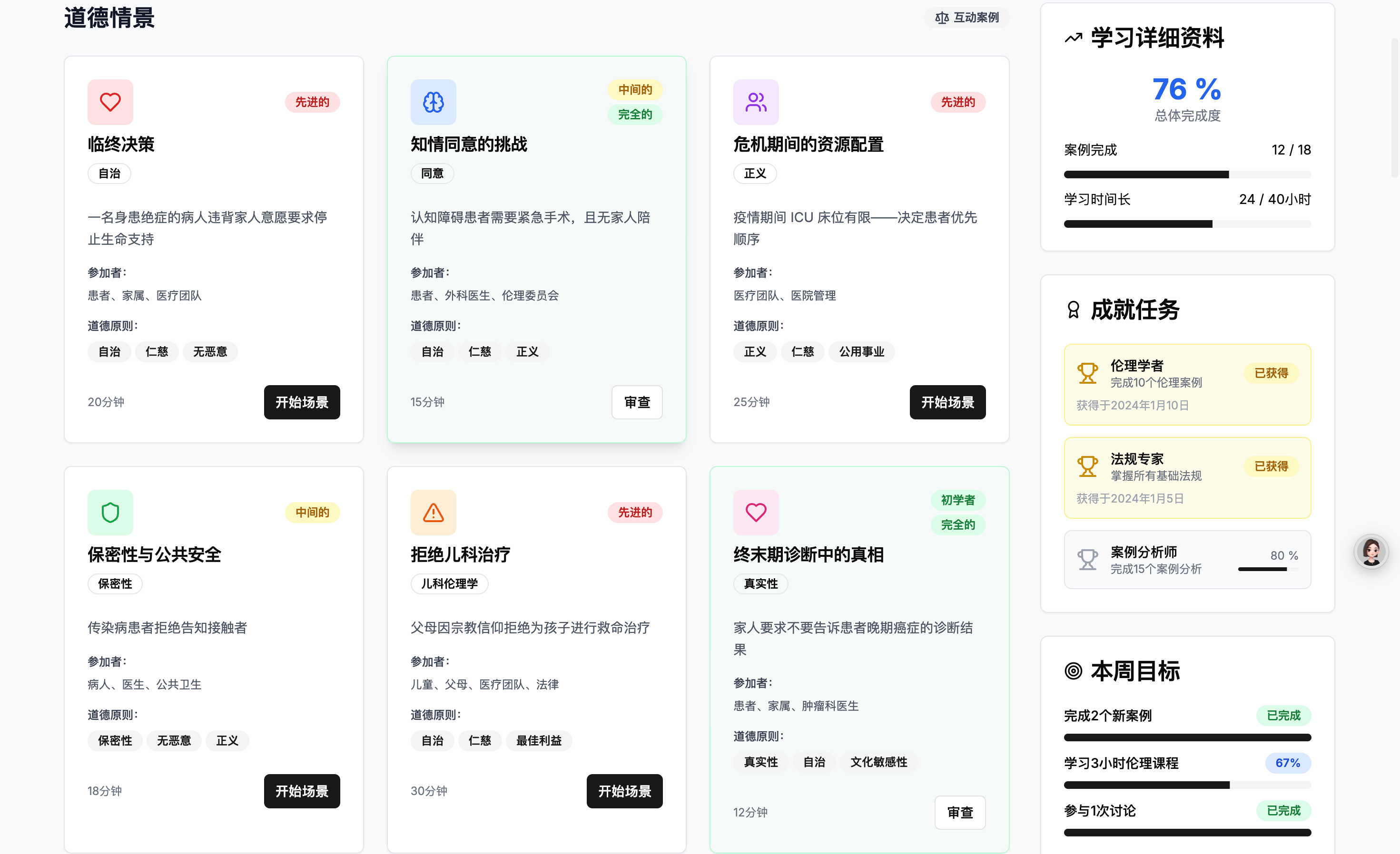 9. 医学伦理与法律合规模块功能概述:帮助学生理解医学伦理与法律规范,确保学生能够遵循职业道德和法律要求。