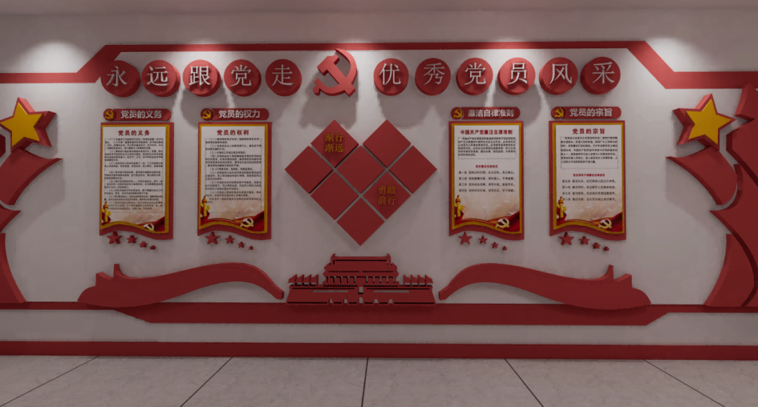 此内容为一款主要针对党员入党宣誓的VR体验产品,集成了虚拟现实技术、三维全景、三维建模、仿真引擎等高科技技术的产品。 体验者可以使用该内容学习【入党誓词】、【我们的荣誉】、【不忘初心 牢记使命】、【四个意识】【切实加强党建工作 发挥党的核心作用】【不忘初心 牢记使命】【中国共产党光辉历程】【永远跟着党走 优秀党员风采】【社会主义核心价值观】等9个大类板块,通过智能语音系统、虚拟仿真引擎、三维模拟等技术,引导体验者体验多个主体板块内容。