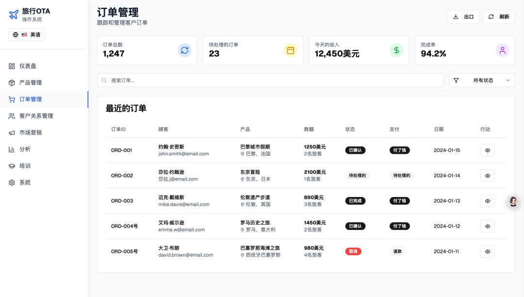 全流程订单追踪:支持状态监控、支付对接、客户通知;
