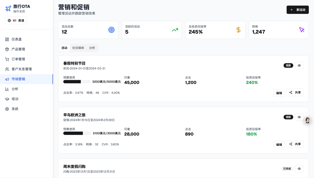 为了提升产品曝光率并吸引更多客户,平台内置了多项智能营销与广告投放功能: