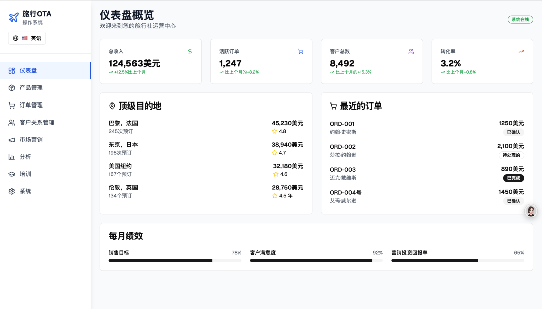 在此背景下,“旅行社OTA运营实训系统”应运而生,致力于构建一个面向高校教育、企业培训与创业实践的一体化数字旅游运营学习环境。