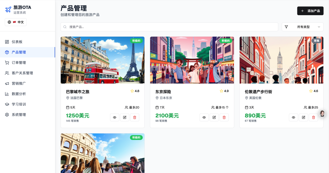 旅游产品是旅行社业务的核心,如何设计、管理和优化产品关系到企业的市场竞争力。旅行社OTA运营实训系统通过AI技术帮助用户: