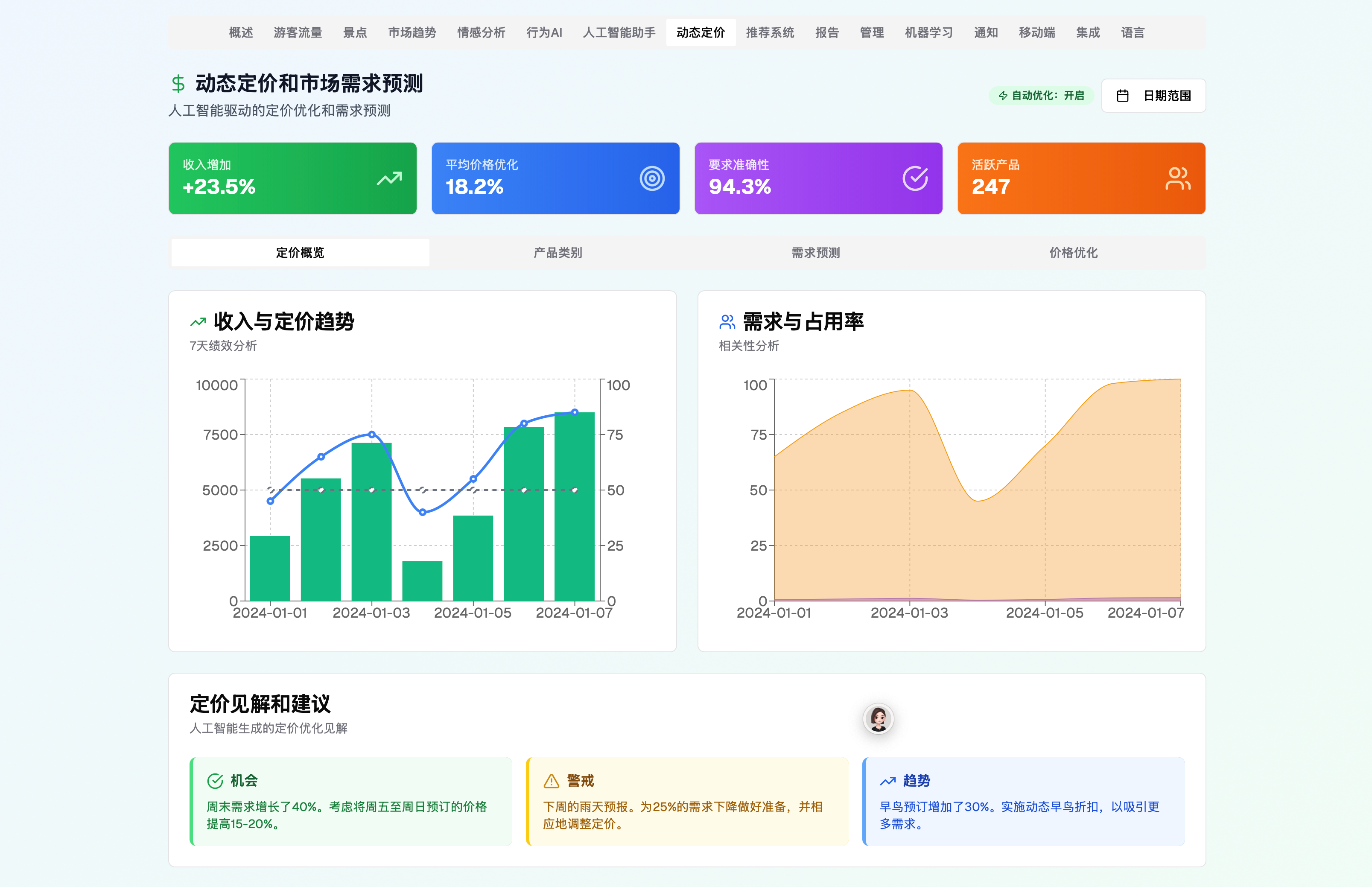 AI决策支持系统:通过机器学习算法优化定价、营销策略等决策,帮助旅游企业与政府做出科学决策。