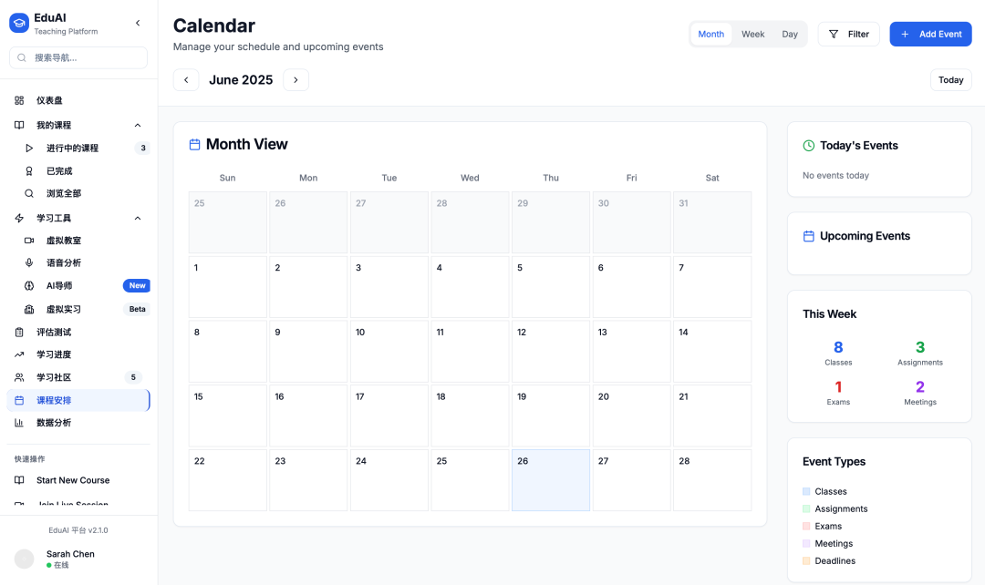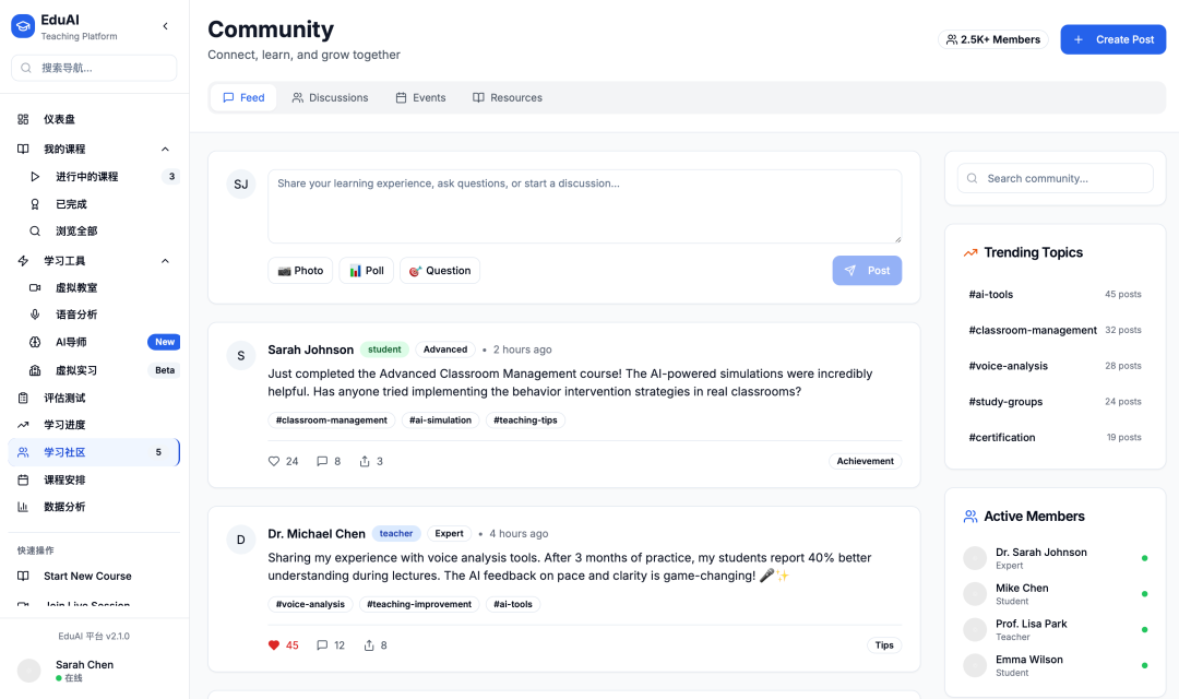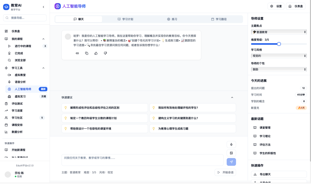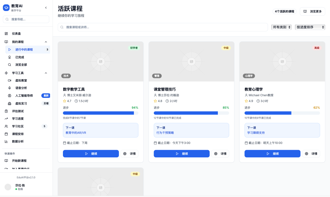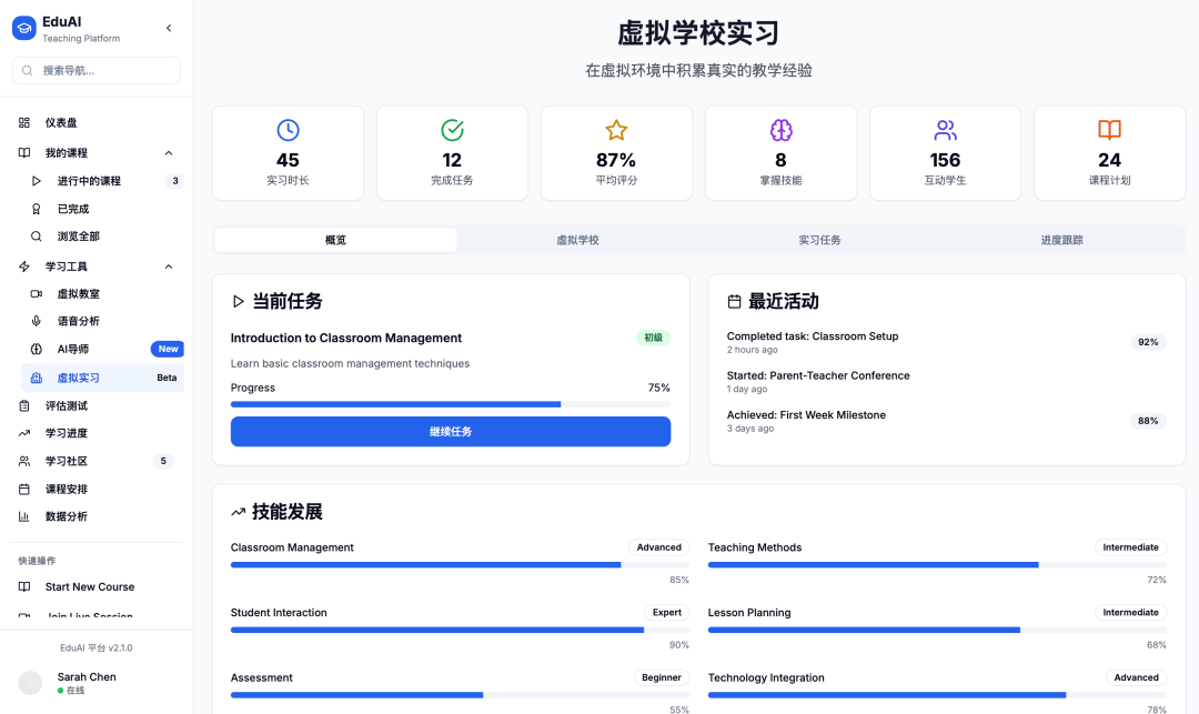 教师是平台的教学主体,负责课程设计、教学资源管理、学员评估与反馈。教师在平台上可以通过AI和XR技术提高教学效果、优化课堂管理与学员互动。