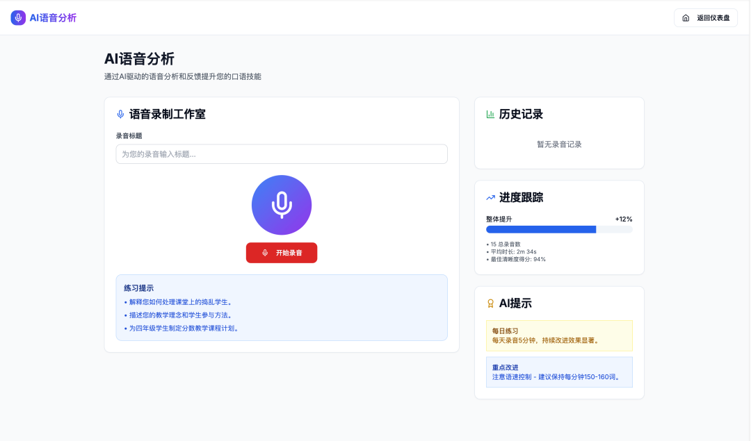 该平台结合AI与XR技术,全面提升了教师培训与学员学习体验,通过个性化学习路径、虚拟仿真实训、智能评估系统、职业发展支持等模块,确保了学习、实训、科研与职业规划的有机融合。平台的可扩展功能,如语音辅助、增强现实教学、智能行为分析等,将为学员、教师和管理员提供更加智能、高效、灵活的使用体验。