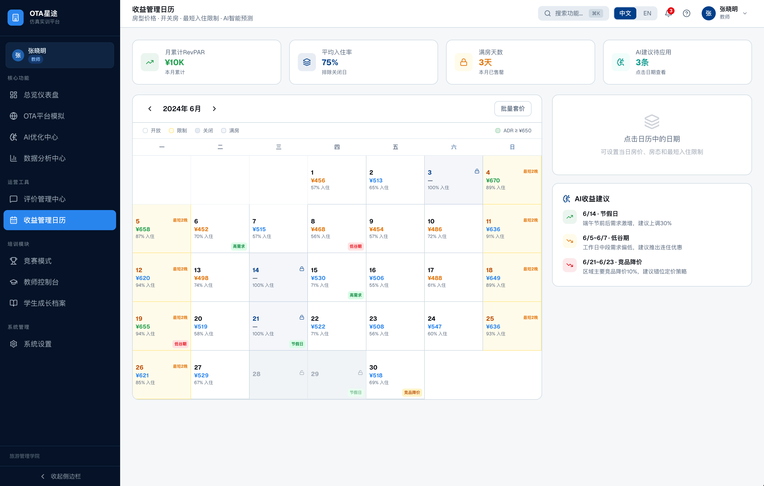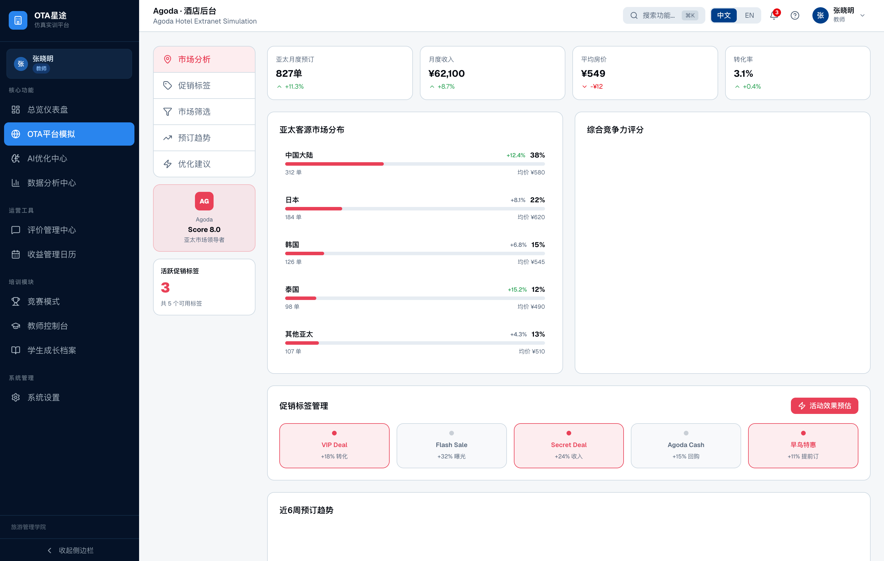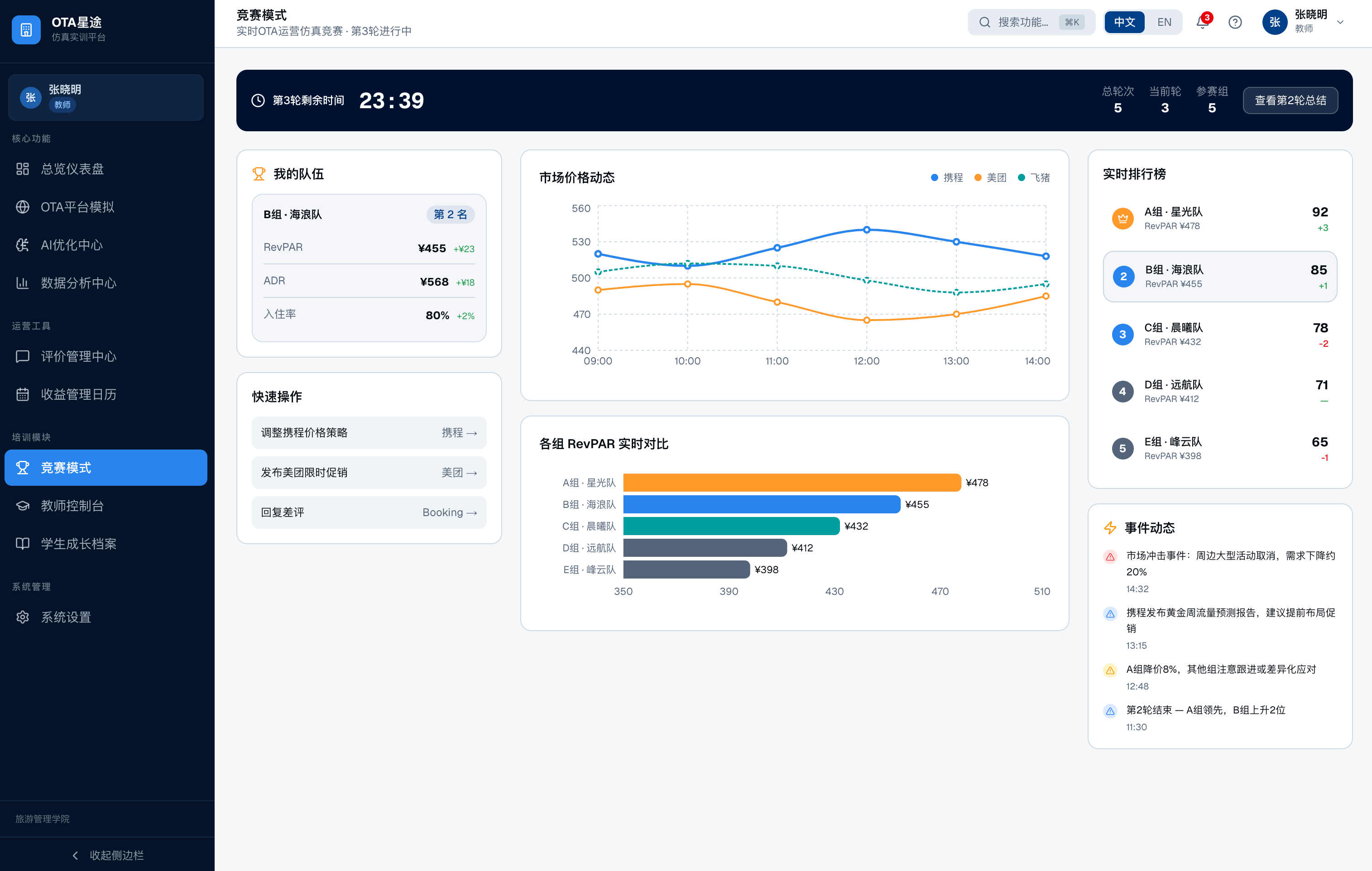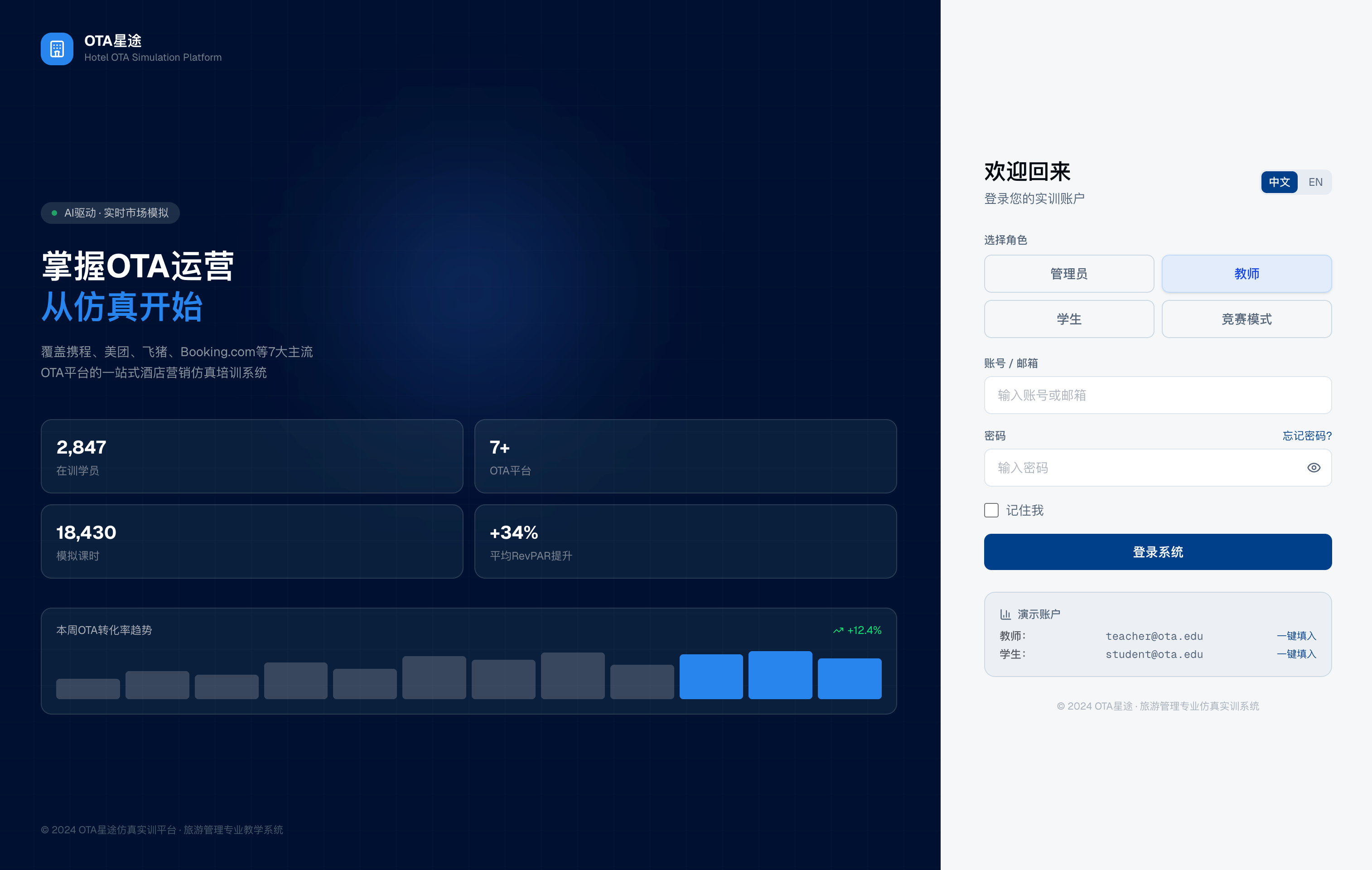本平台面向酒店管理、旅游管理、智慧文旅、数字营销、收益管理等专业,构建一个融合: